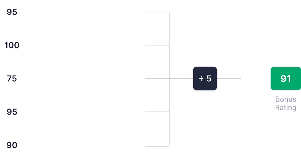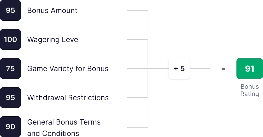 | Če igralnica ponuja bonuse (dobrodošli in ekskluzivni brez pologa) z višjimi od povprečnih zahtevami. | 90 |