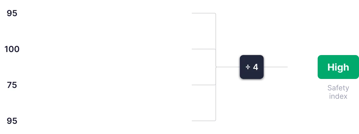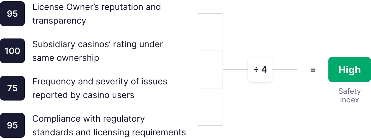 Kazino ocenjujemo glede na varnost na podlagi 4 meril (2 individualni in 2 medsebojno povezani), vsako ocenjeno od 0 do 100. Ocene se seštejejo, povprečijo in uporabijo za določitev končnega indeksa varnosti.